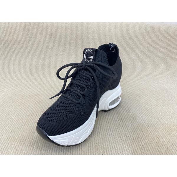 Women black platform flyknit loafers with breathable mesh upper and lace up soft